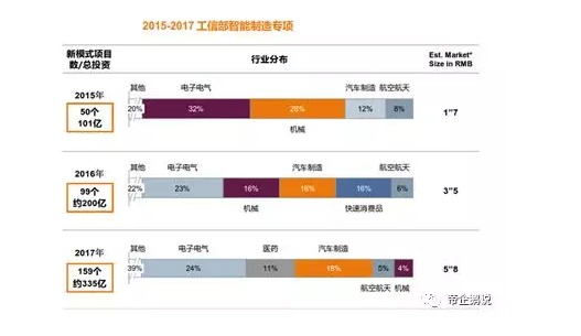 这种扶持力度还在不断加大,而带来的效应也在不断加大。这里给出几组数据,2015年批复的新模式项目数共计50个,总投资约101亿;到了2016年整体翻倍,项目数99个,投资约200亿;2017年又翻了1.5倍,项目数159个,投资约335亿。项目涵盖了几乎所有主流离散行业,所有制造业大省,参与的企业达上百个。