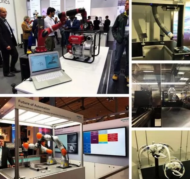 今年展会上依然出现了很多所谓“黑科技”(即具有技术突破性但尚无法大规模应用的技术),比如Festo推出的最新一代仿生机器人BionicWheelBot、BionicFlyingFox;西门子用AI技术打造的增加生产柔性的Autonomous系统;Rethink开发的带外力感知和虚实结合的协作机器人;Autodesk同慕尼黑工业大学实验室共同打造的人形机器人;还有各种超导、磁悬浮的炫酷应用以及结合VR、AR、MR虚拟现实效果等等。
