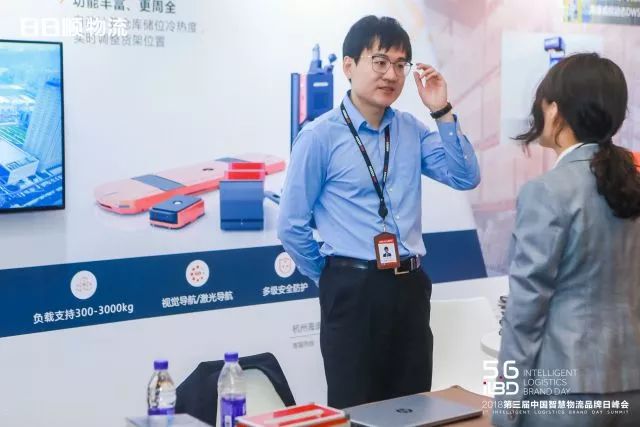 海康威视智能仓储机器人在静态展区进行展示,可实现收货、分拣、搬运、入库、出库等各项仓储作业,大大降低了工人的劳动强度,提升工作效率。