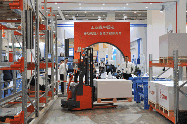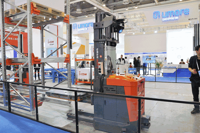 木牛流马在展会非常有限的空间里不仅展示了AGV车辆与穿梭车的对接,还展示了AGV助力穿梭车换层,技术实力满满。也充分体现了AGV和密集型存储系统的完美匹配。