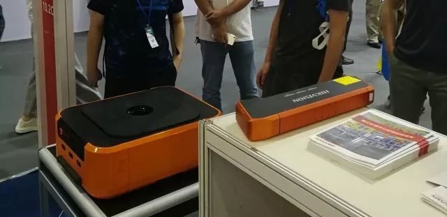 ▲海康威视智能仓储机器人(左)及线激光立体相机(右)