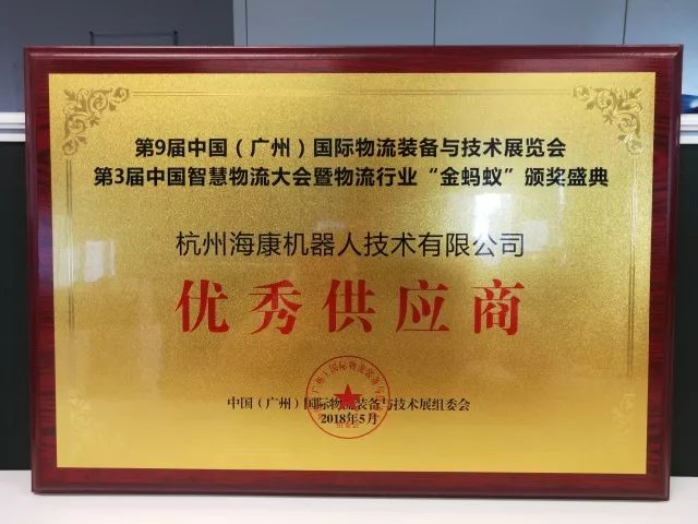 展会同期举办了第三届中国智慧物流大会暨物流行业“金蚂蚁“颁奖盛典,海康机器人荣获第三届物流行业“金蚂蚁”优秀供应商称号。杭州海康机器人技术有限公司区域销售总监金军上台领奖并受邀发表精彩演说,分享了海康机器人在智慧内物流领域的思考与创新技术成果。