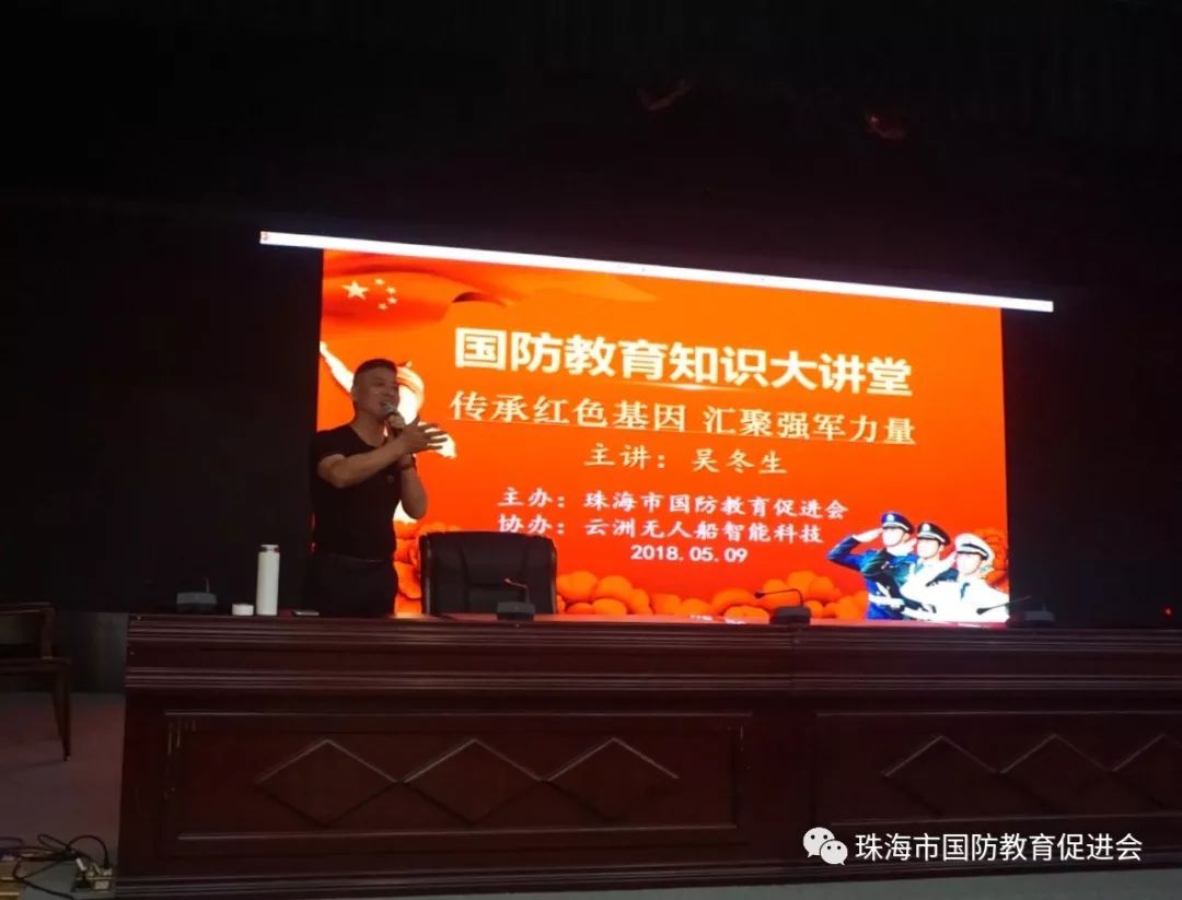2018年5月9日,珠海市国防教育促进会吴冬生会长一行莅临珠海云洲智能科技有限公司,以“传承红色基因,汇聚强军力量”为主题,通过吴冬生的亲身经历给每位云洲人上了一堂别开生面的国防教育课。