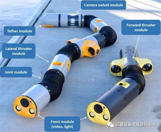 Eelume概念如下图所示, 在挪威特隆赫姆NTNU和SINTEF的蛇机器人研究领域进行了10多年的研究。这个概念涉及一种新型的柔性海底潜水器, 其包括一系列接头、推进器模块和各种有效载荷模块。该产品的独特之处在于其改变形状的能力。它具有灵活性和超级冗余性, 这是以前在石油和天然气业务的商业检查和干预潜水器上所不具备的。