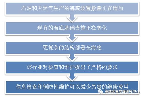 随着科技的不断进步, 人类对于能源的需求不断增长, 传统的石油和天然气开采也面临越来越大的压力。因此, 带动的石油和天然气行业对用于海底安装的检测,维护和修理(inspection, maintenance and repair,IMR)的新型创新解决方案的需求也日益增长: