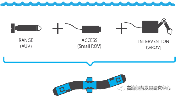 该潜水器的狭长机身还可以像巡航AUV那样长途运输(假定潜水器是无绳的并且由电池供电)。因此, 该产品结合了现有ROV的IMR能力和现有AUV的巡航和勘测能力。其灵活性及其覆盖大范围运营场景的能力使之成为海底常驻IMR解决方案的理想选择。