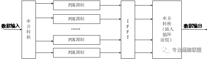 在OFDM中,调制和解调是必不可少的。在调制过程中,有多路子载波,我们对子载波上的信号进行差分相位键控调制方式,简称PSK调制方式。其调制和解调原理如下: