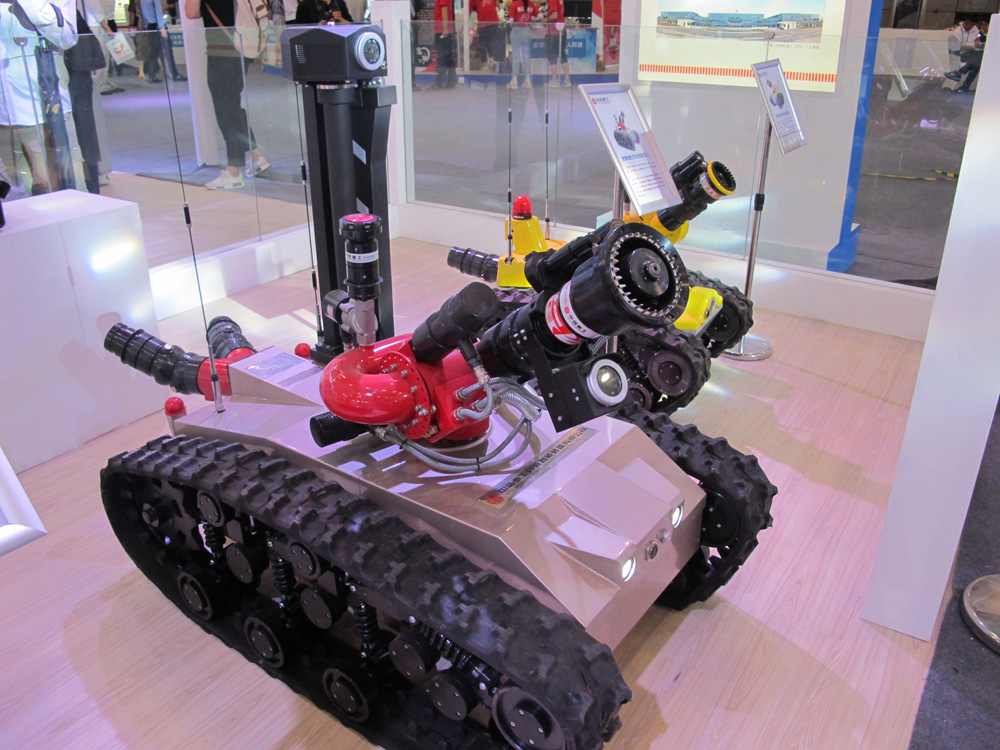 据介绍,在石化、燃气等危险场所发生火灾时,该消防灭火机器人能拖动长60米充满水的80毫米水带高速行走,通过远程视频操控,可代替消防员深入火场内部进行救援,大大提高救援的安全性。