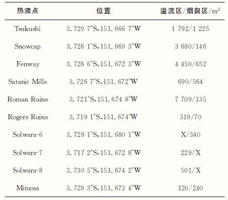 表2 PACMANUS主要热液点的位置及分布面积