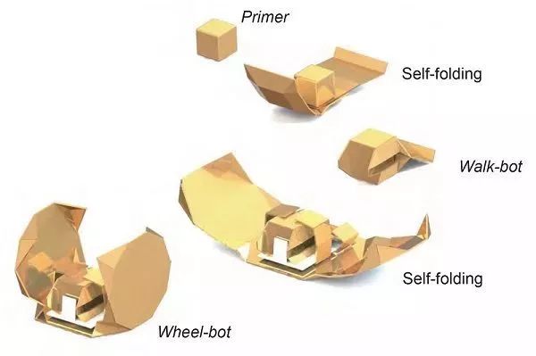 与胶囊机器人有同样“用武之地”的还有下面这个“纸片机器人”,当很多团队还在设计特定用途的机器人的时候,麻省理工的研究人员们打造了一款可以变换各种外形、以适应不同任务的新式机器人——Primer。