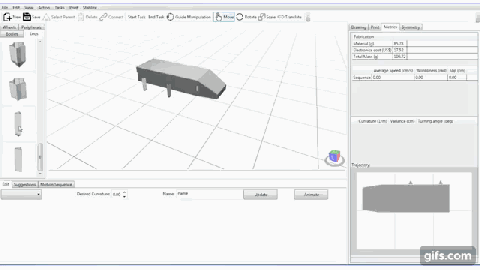 MIT也一直在3D打印方面进行各种尝试,他们想出了一种方法,让普通人也可以设计和制作3D打印机器人。下面这个软件叫做“Interactive Robogami”,界面简洁易用,一般人可以快速上手。最棒的是,它是端对端的模式,能够直接生成3D打印文件,包括电子线路打印数据。