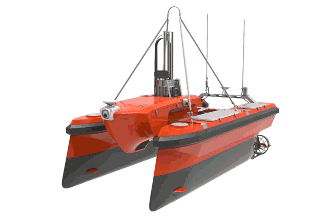 该艇可搭载多波束、单波束、侧扫、ADCP等不同任务载荷,具有自主航行,可按照设定的间隔(如10米间隔)在指定海域面积范围内自动完成水下地形测量、水下地貌探测、流量测量、重力磁力场测量、水下目标物寻找等测量任务。