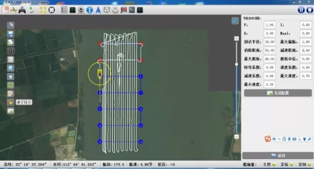本次测量任务中,该艇搭载T20P型多波束测量系统、wave master组合惯导系统和无线宽带全向通信天线,通过遥控基站发送测量任务,无人艇自动控制以上仪器,自主完成水深测量并实时回传数据至基站。