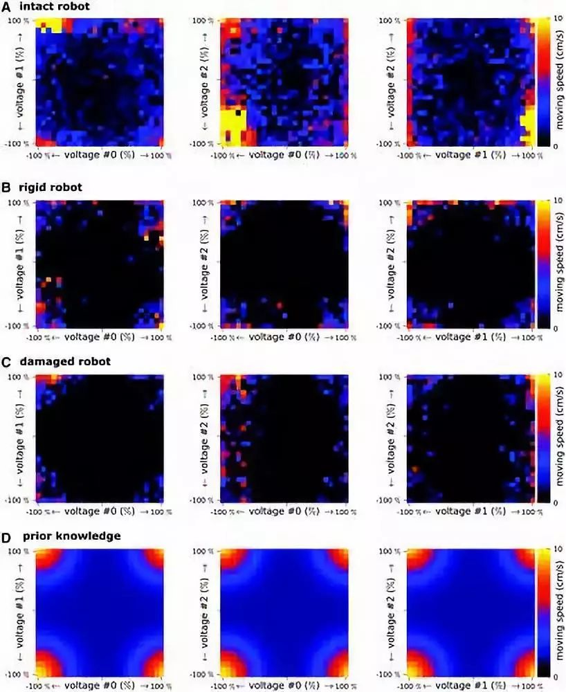 因此,到目前为止,大多数软体机器人的运动步态都是通过实验的试错法来手动开发的。这一过程既具有挑战性也耗时,尤其是在寻求充分利用软体机制的动态复杂性时。重要的是,这个手动过程也阻止了这些机器人在环境变化时调整其控制策略,例如当它们遇到意想不到的地形时,或者当它们受到物理损坏时。