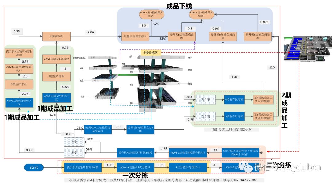 怎么配?智能物流在这里得以充分表现,智能工厂中主要还是考虑智能化的配送,比如采用AGV的配送,这里想强调的并不是配送智能化设备,而是将配送的规划,如路径配送批量,批次等与智能化配送工具如何融合,从实际的配送业务需求导向配送的设备,这才是科学的方法,而不是为了智能化而智能化。那么如何去规划和评估,我认为还是得从流程活动中的实际需求出发,将流程进行拆分,进行系统化的数据分析甚至是模拟分析,才能做到科学的配送规划。