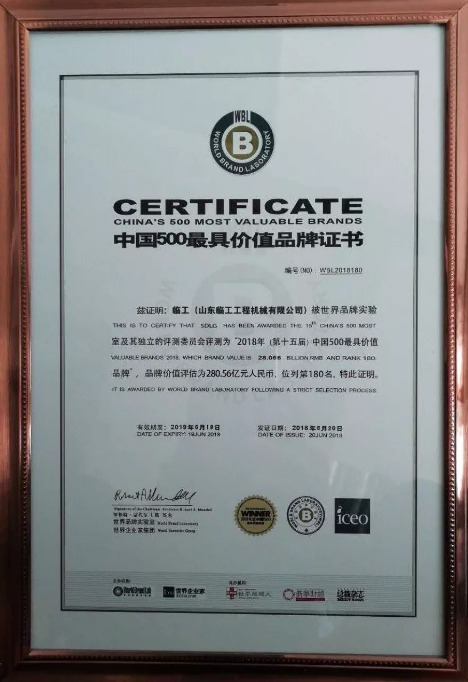 2018年,临工以280.56亿元的价值再次上榜“中国500最具价值品牌”,也彰显出企业可靠的产品质量,超高的品牌信任度和强大的实力,意味着临工正在向“国内一流、世界知名”的目标大步迈进,强劲势头无人能够忽视,随着全球化进程的加快,临工将在更大的国际舞台上传递中国品牌的力量。