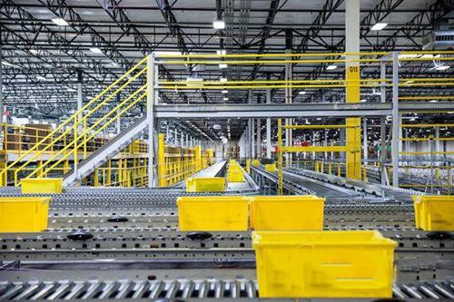 分拨设备:指自动完成分播作业或辅助完成分拨作业的设备。目前,笔者只见过亚马逊应用了此类型设备,在其第七代运营中心和部分第八代运营中心里面使用滑块分拣机对按照流程拣选(FlowPicking)方式拣选出来的商品进行辅助分拨作业。因为流程拣选方式的特殊性,在最大化拣选效率以后,无法只依靠人工作业的方式完成分拨作业,必须依靠分拣机、相关算法和WCS协调辅助进行分拨作业。