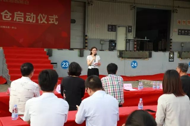 仪式上,中山市商务局刘局致辞。他指出,“越海智能仓”的落成弥补了中山在智能仓储方面的不足,此举也顺应了物流、仓储领域的业态发展。随着中山区位优势日趋明显,智能仓将进一步增强中山在跨境电商和外贸业务的综合实力,市政府对该产业一直给予高度关注和大力支持。