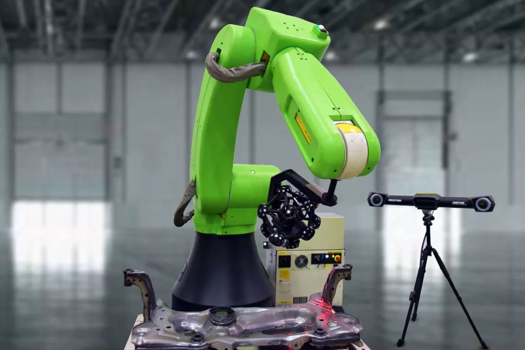 CR-35iA协作机器人使用3D扫描仪,完成对汽车底盘工件的质量检测作业