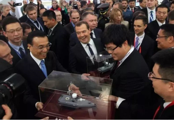 张云飞向中俄两国总理汇报云洲无人艇发展情况,获得两国总理的点赞