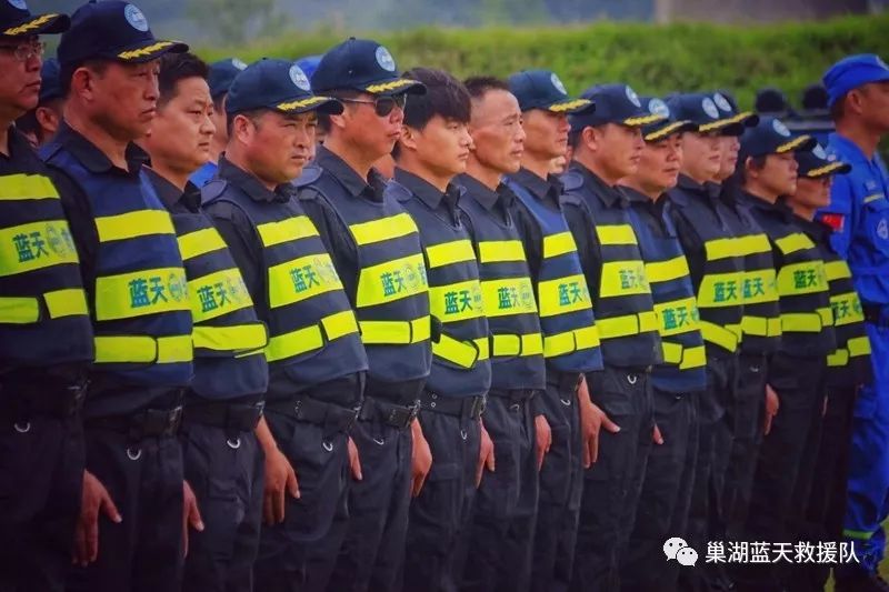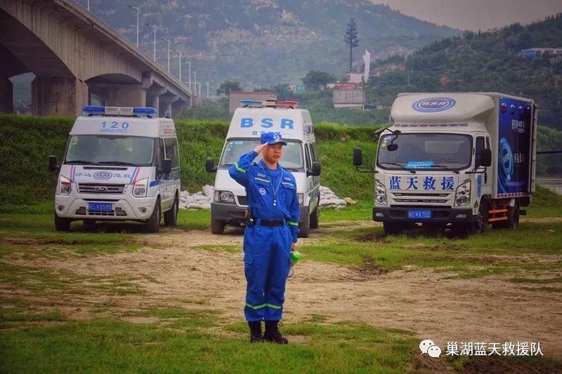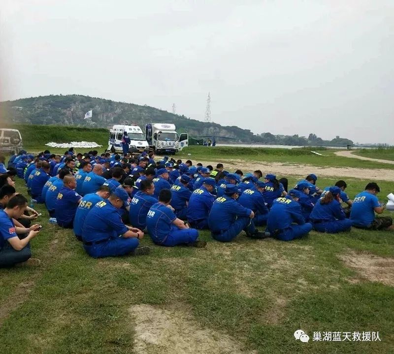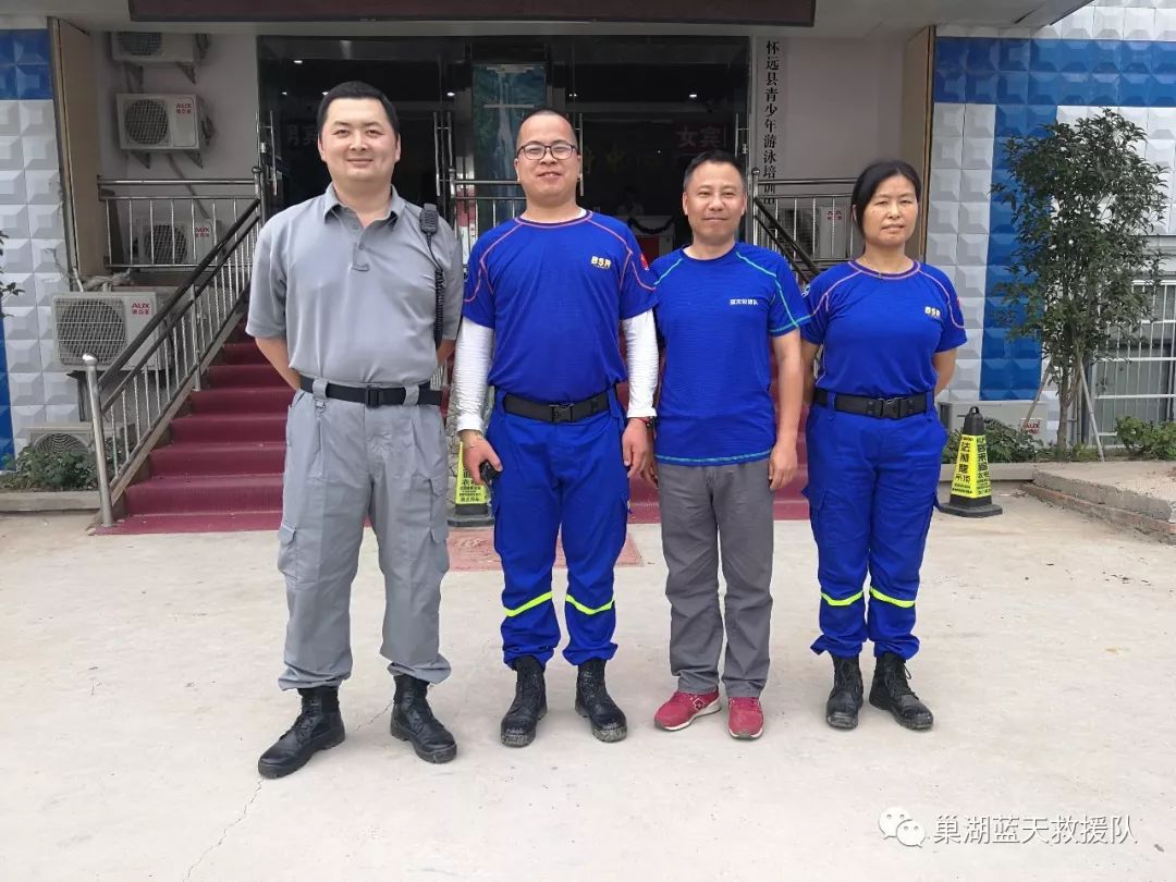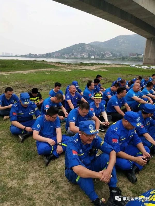 培训持续到下午17:00,各队参与培训的队员通过此次培训对复杂水域下技术搜索设备、方案都有了全新的认识,并相互交流学习,促进了各队和谐发展。培训结束后我队三名队员与蓝天救援(BSR)安徽省品牌督导官徐峰先生合影留念,经督导官批准撤回,于19:00安全抵达巢湖,圆满完成此次会议、培训任务。