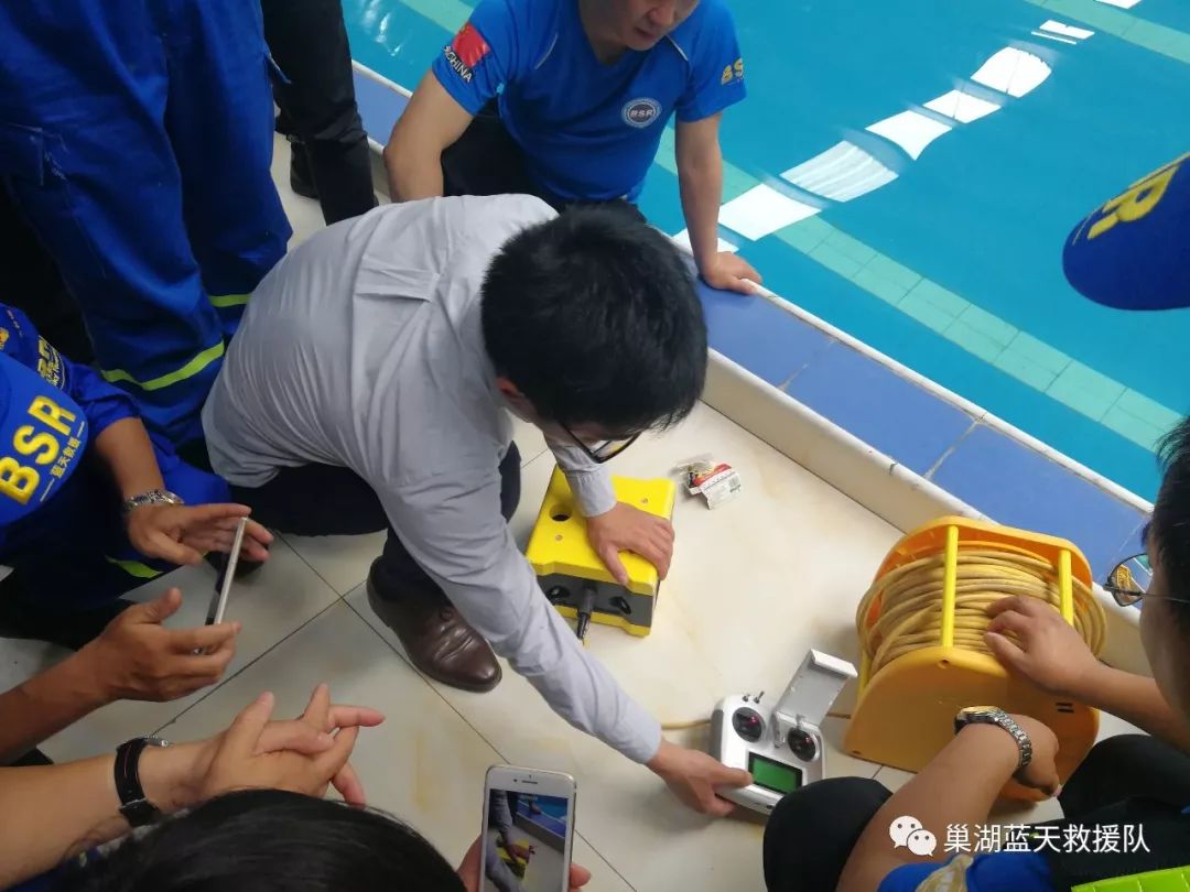12:20全体培训人员赶赴怀远县某健身中心室内游泳池,开展水下机器人操作、搜索及工业级侧扫声呐的操作、识图培训。
