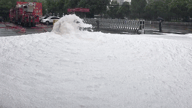 在上午的演练中,消防机器人们完成了远距离拖动水带行走喷水、楼道攀爬、红外线探测搜救、排烟降温等消防功能的测试。