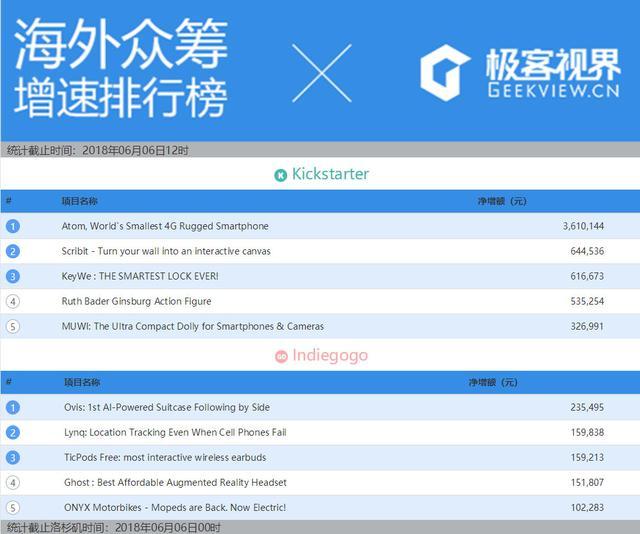 今天Kickstarter第一名是 Atom,一款世界上最小最坚固的4G手机,