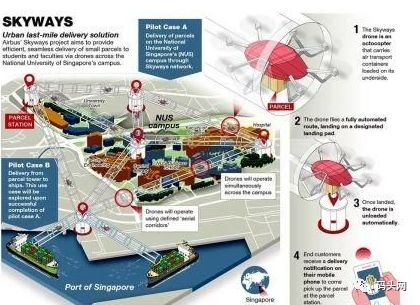 据悉,为期两周的初期岸到船试验将于2018年第三季度开始,将包裹运送到停泊在世界最繁忙港口之一的新加坡海岸船只。Wilhelmsen公司和空中客车公司将通过空中客车的Skyways无人机系统(UAS)向锚地船舶试运送备件、文件水质检测包和3D打印耗材。指挥和配送中心将设在码头,初期运送范围距离海岸线不超过三公里。第二个配送站将位于新加坡滨海湾南的一个开放区域,以便将配送范围扩大到更多地停泊船只。