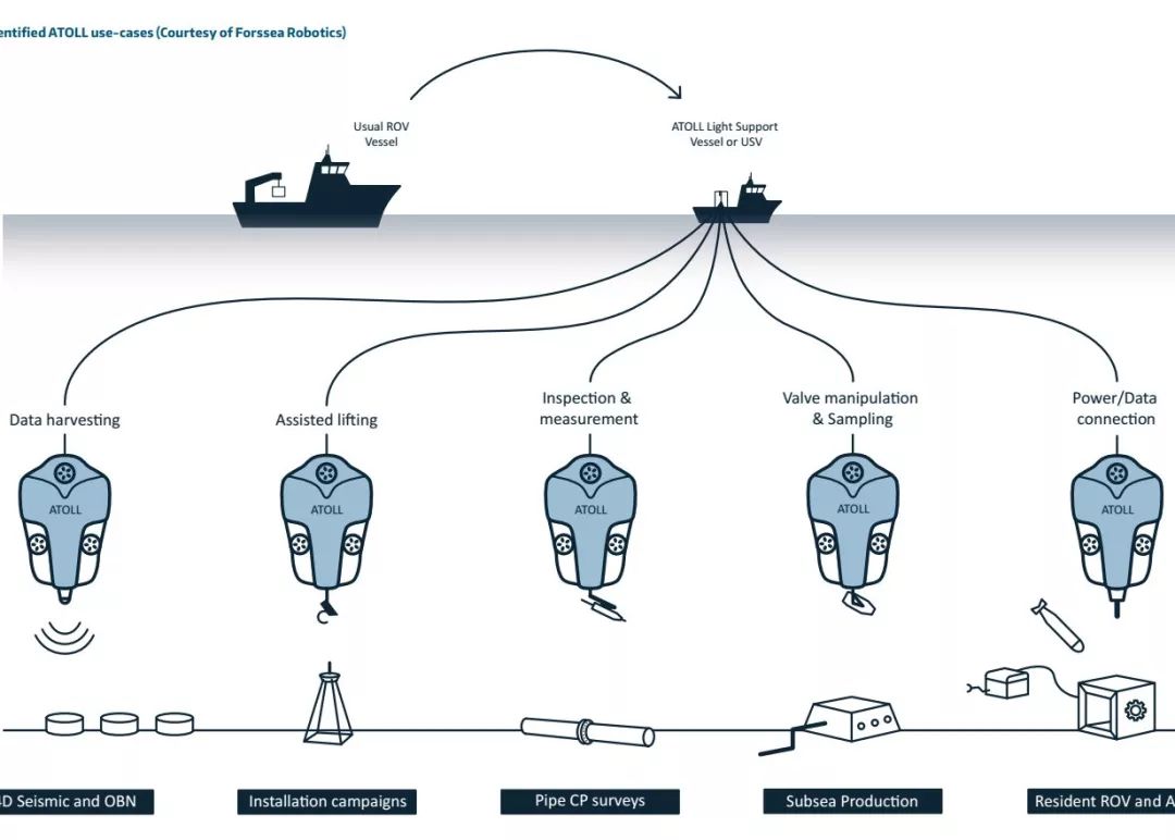 ATOLL使用先进的机器学习技术实现这一过程,ATOLL与海底目标对接后,可实现地面和海底之间能量和数据的交换连接,实现多种功能(如下图)