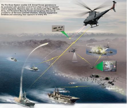 “火力侦察兵 ”MQ-8无人机是美国诺斯罗普·格鲁曼公司为美国海军研制的舰载垂直起降战术无人机,用于执行侦查和瞄准任务。美海军希望该无人机平台能够成为一种多功能武器系统,以承担海上巡逻侦察、反潜、反舰及反水雷作战任务。
