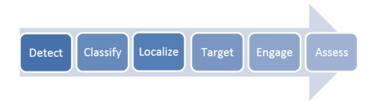 DARPA认为CDMaST项目的任务组成应覆盖杀伤链的每一环节,保证各环节高速、有效,提高打击性能。一条完整的杀伤链应包括发现(Detect)、识别(Classify)、定位(Localize)、跟踪(Target)、交战(Engage)、评估(Assess)六大任务单元。下图展示了杀伤链流程和完整杀伤链所需的CDMaST功能支撑图。