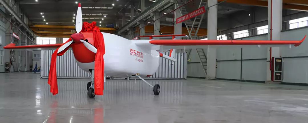 京东“京鸿”大型货运无人机由京东自主研发设计,是首个真正意义上基于物流运输场景需求研发的大型原生无人机,具有全天候全自主的飞行能力。其翼展10.12m,全机长7.01m,机高2.635m,满载航程1000km,巡航速度200km/h,巡航高度3000m,升限5000m。