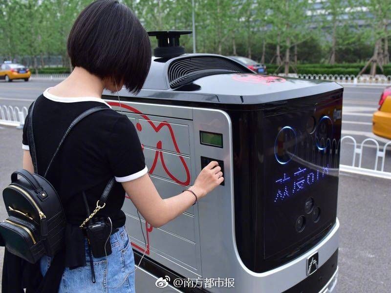 送货机器人驰骋中关村,拿快递可用人脸识别