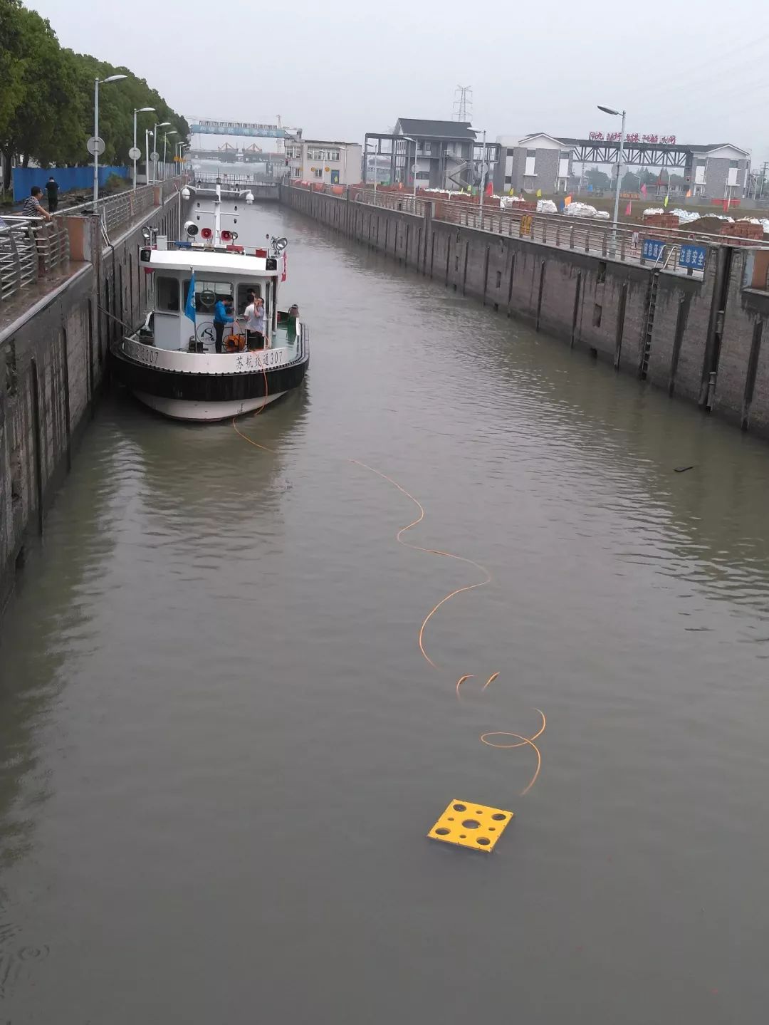 6月22日,“水下构筑物探测机器人系统”的水下测试在九圩港船闸进行。由河海大学周军教授带领的研发团队到达现场时正赶上船闸阀门出水检修,研发团队一行利用水下机器人协助船闸养护人员对了阀门主轨道的磨损等水下情况进行了检查。