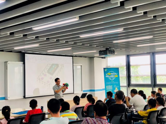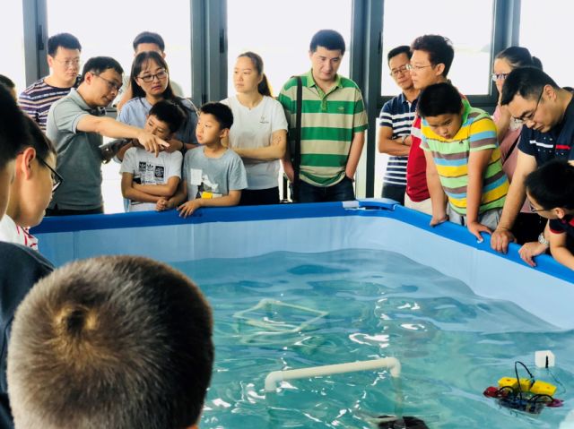 青少年科普兴趣组赛前培训于6月23日在浦东临港新城海洋科技广场三楼举行。来自上海市的30位小学生参加了此次培训。上海智海海洋技术有限公司董事长姚陟强向同学们讲解理论知识,展示水下机器人组装技巧,并指导同学们组装机器人。除了比赛机器人操控和组装,现场还有玩具机器人操控体验。