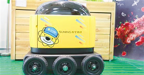 苏宁无人车“卧龙一号”入驻苏宁小店。 本报记者 周 雷摄