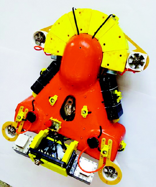 一台直径70厘米、重32公斤的小机器人,钻到水里,游到船边,吸到船体,就像扫地机器人一样,边走边清理着船体上附着的海蛎子、海带等船体附着物……