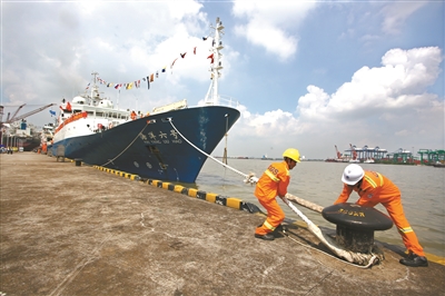 昨日,广州海洋地质调查局“海洋六号”船,从东江口海洋地质专用码头起锚远航。