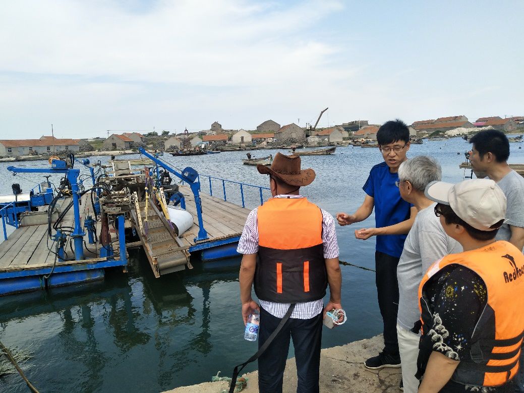 在山东罗博飞公司董事长马秀芬、荣成荣金公司董事长闫荣金等人的陪同下,金翔龙院士先后参观了贝藻体系平台、机械化牡蛎采收平台及智能化海上养殖监控平台,听取了牡蛎养殖体系的工作进展,与牡蛎养殖体系研发人员进行了座谈交流。金院士充分肯定了2家公司的合作成果,并希望双方继续加强合作,联合相关高校、科研院所的科研力量,不断完善牡蛎养殖体系,真正实现牡蛎养殖的机械化、智能化。
