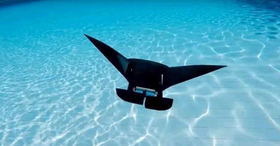 “蝠鲼机器人”,它大约有35厘米长63厘米宽,重量约为680克。它的每一个胸鳍都有一个电动马达提供动力,借助这对柔软的胸鳍它能够畅游长达10个小时。