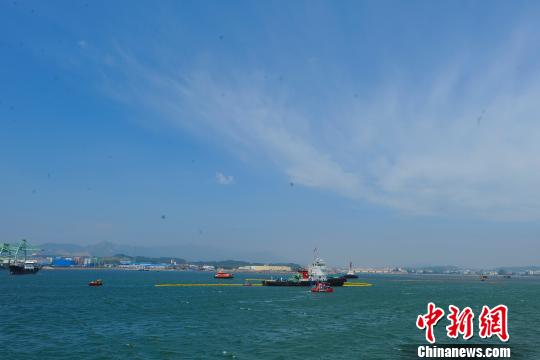 演练模拟一艘散货船在成山头海域与海底不明物发生触碰,造成燃油舱破损,燃油泄漏入海,对海域、岸线环境造成威胁。威海市海上溢油事件应急处置指挥中心立即协调应急力量开展了海上应急交通管制、溢油监视监测、海上溢油围控清除等3个演练科目。