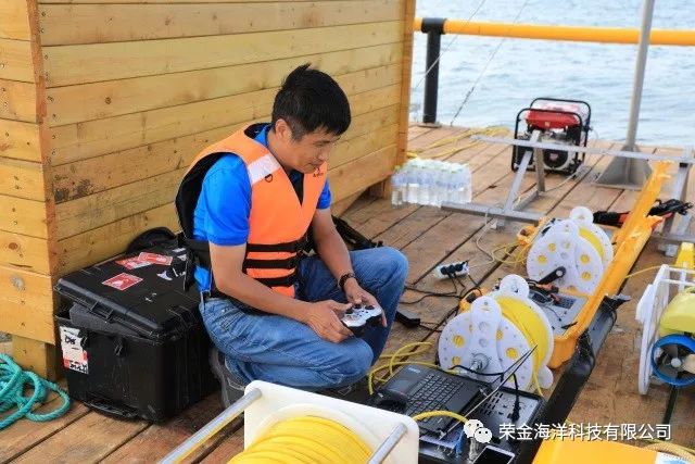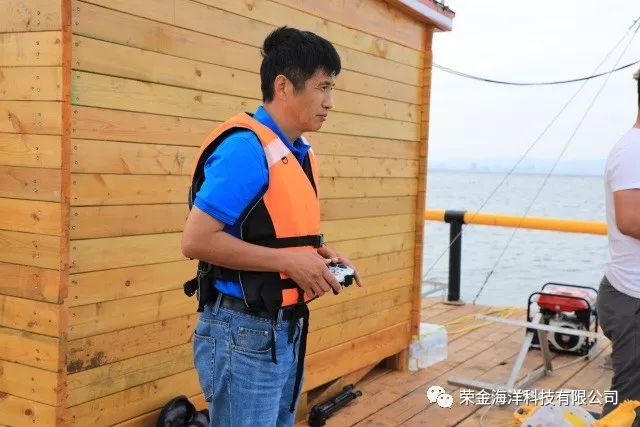 青岛罗博飞的杨总操作水下机器人配合拍摄