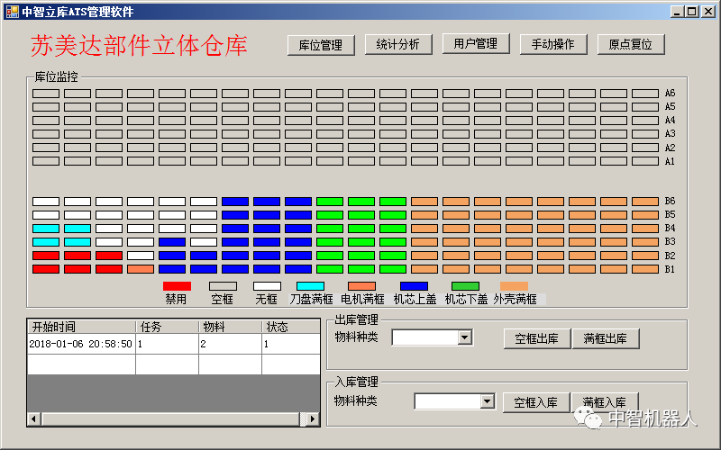 中智机器人为苏美达集团提供的自动化立体仓库,载重设计300KG/每库位,行走速度达到2米/秒,实现物料的快速入库和出库,提高生产效率,避免产品物料磕碰带来的质量问题:
