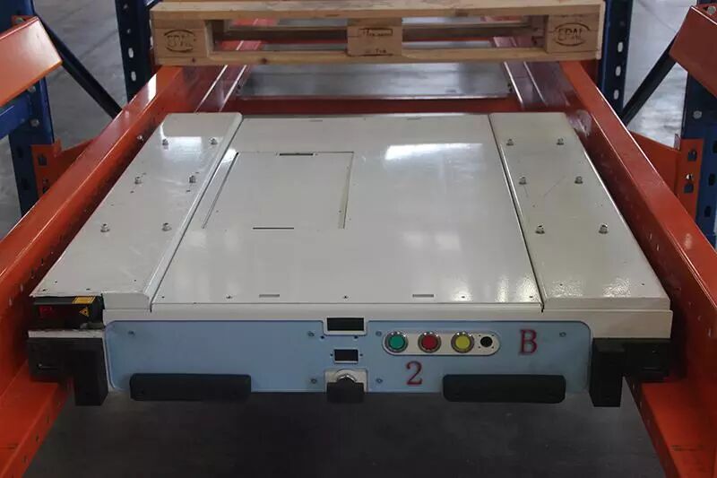 无线电控穿梭车是一种可在货架内部独立运作,无需叉车进入货架内部巷道的自动化仓储设备。操作者通过遥控器传输指令,操控穿梭车在货架轨道内完成所有存储动作。