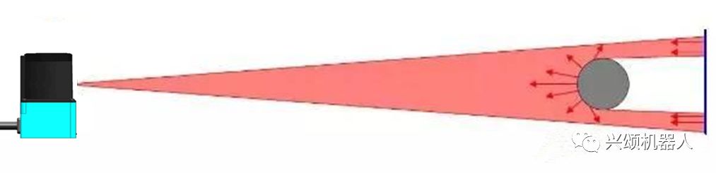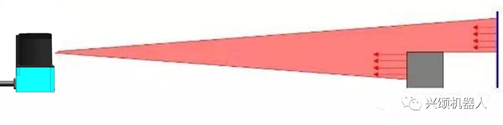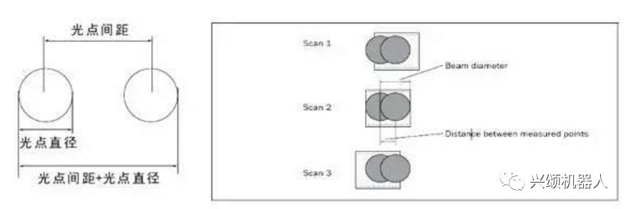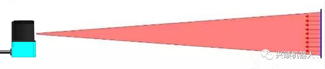 激光扫描传感器所发出的激光光束, 光斑大小会随着距离的增加而增大。