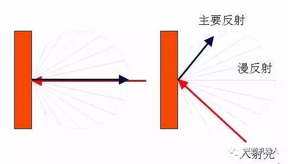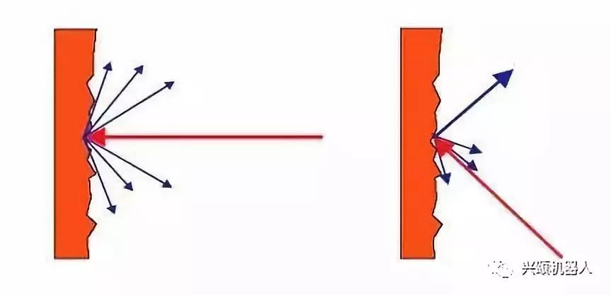 当激光与物体表面成一定入射角,则反射能力会有相应的损失,入射角越小,返回扫描器的光越少,检测距离也就越近。