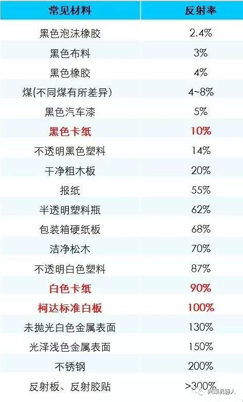 *反射板/反射胶贴。几乎所有的激光都原路径返回扫描器