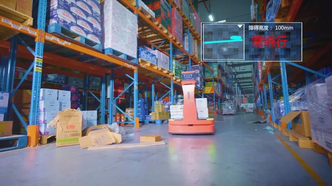 “小红帽”之所以可在不改变仓库作业环境的前提下进行安全地自主移动,是因为它自身配备激光雷达、超声波、深度摄像头等各传感器,可以感知工作环境中的各类障碍信息,包括其他机器人同伴,然后根据内置系统算法切换避障模式,从而做出不同的避障决策,实现降速刹车、预判绕行等自然且安全的避障,将自主移动的智能特性展现得淋漓尽致。