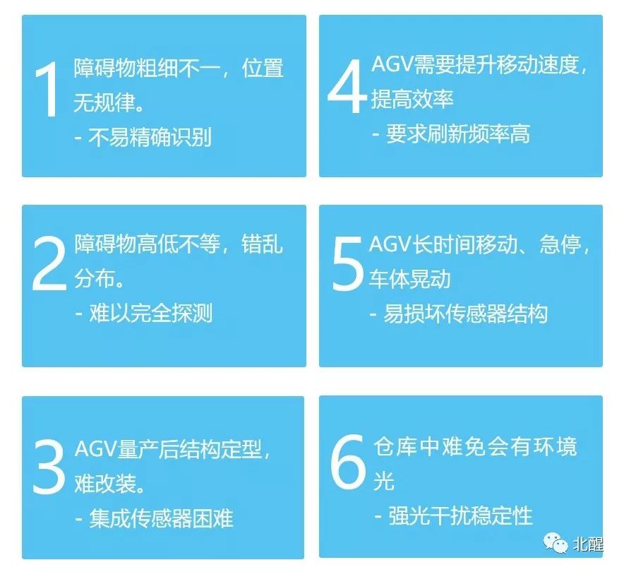 但AGV在实际转移货物时,情况错综复杂,会导致其高效和低成本的优势都大打折扣。例如:AGV行驶路径上如遇到货架上掉落的货物或其他障碍时,若无法及时准确停车,会导致双方同时受损。或者当多辆AGV交叉行驶时,可能出现无法及时准确停车的情况而导致AGV发生碰撞。